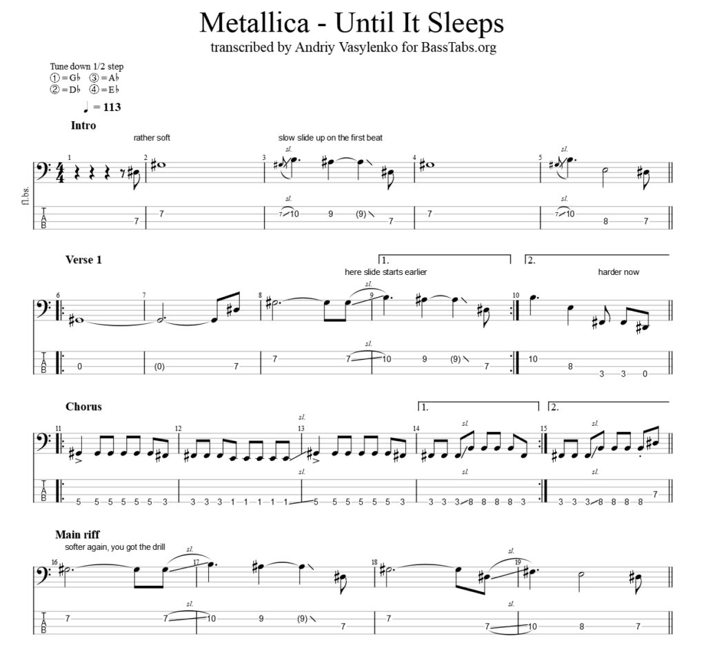 Tags: metallica, until it sleeps, bass tab